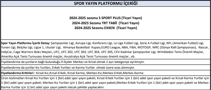 Not: Spor yayın paketi lisansları ödemeyi takiben 7 (yedi) iş günü içerisinde teslimat mail adresine gönderilerek aktif hale getirilecektir.